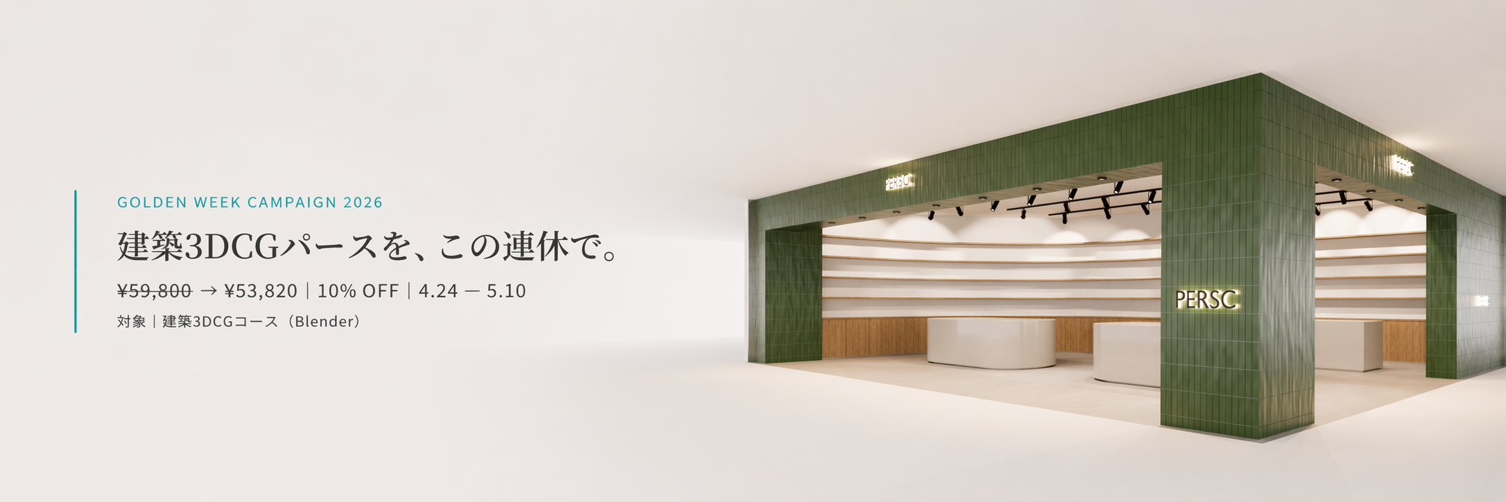 手描きや合成に限界を感じていた提案が、CGによって“伝わる空間”に。提案力と信頼性の両方が大きく変化。素材見本や手描きだけでは伝わらなかった“空間の空気感”。PERSCでCGを学んだことで、提案の質も受注の幅も広がりました。