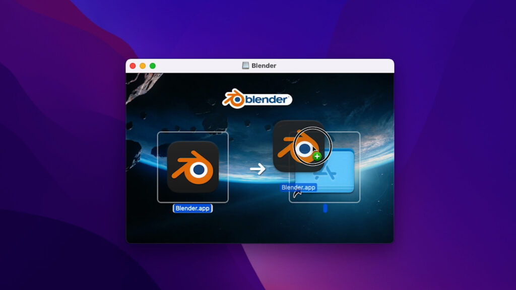 Blenderアイコンをアプリケーションフォルダーに移動すると完了します。