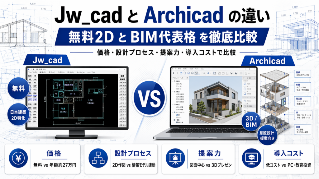 Jw_cadとArchicadの違い|無料2DとBIM代表格を徹底比較
