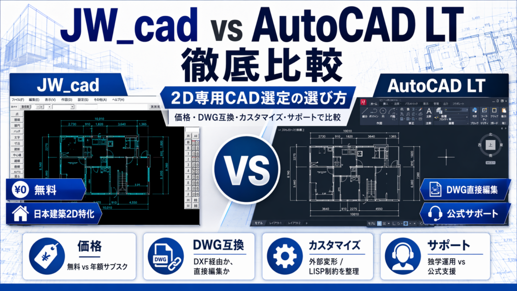 JW_cad vs AutoCAD LT 徹底比較|2D専用CAD選定の選び方