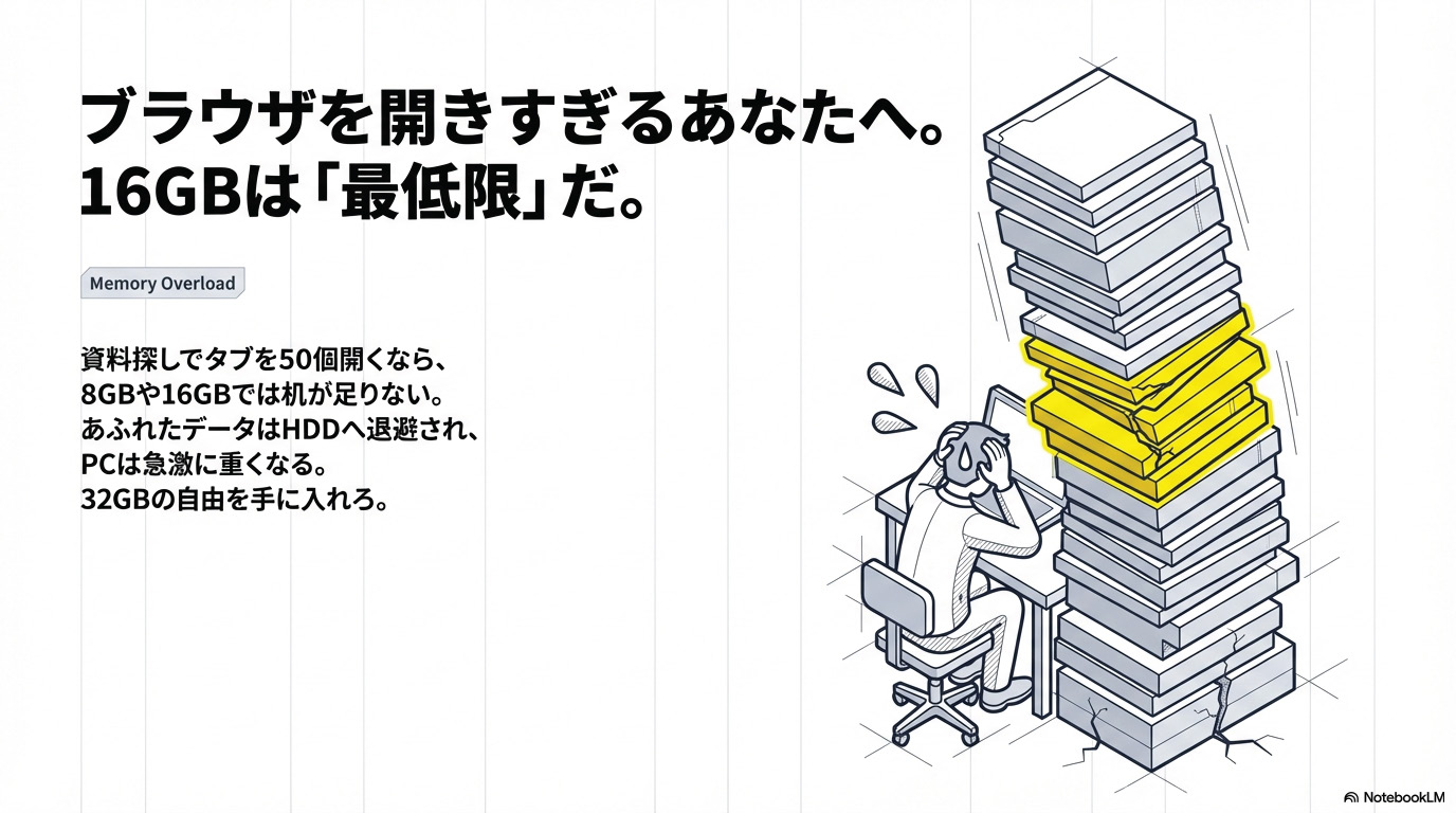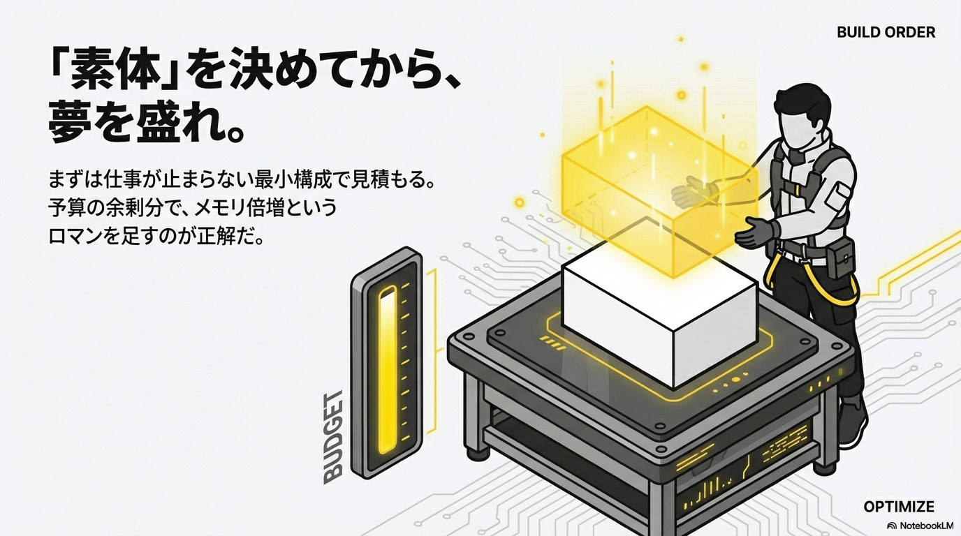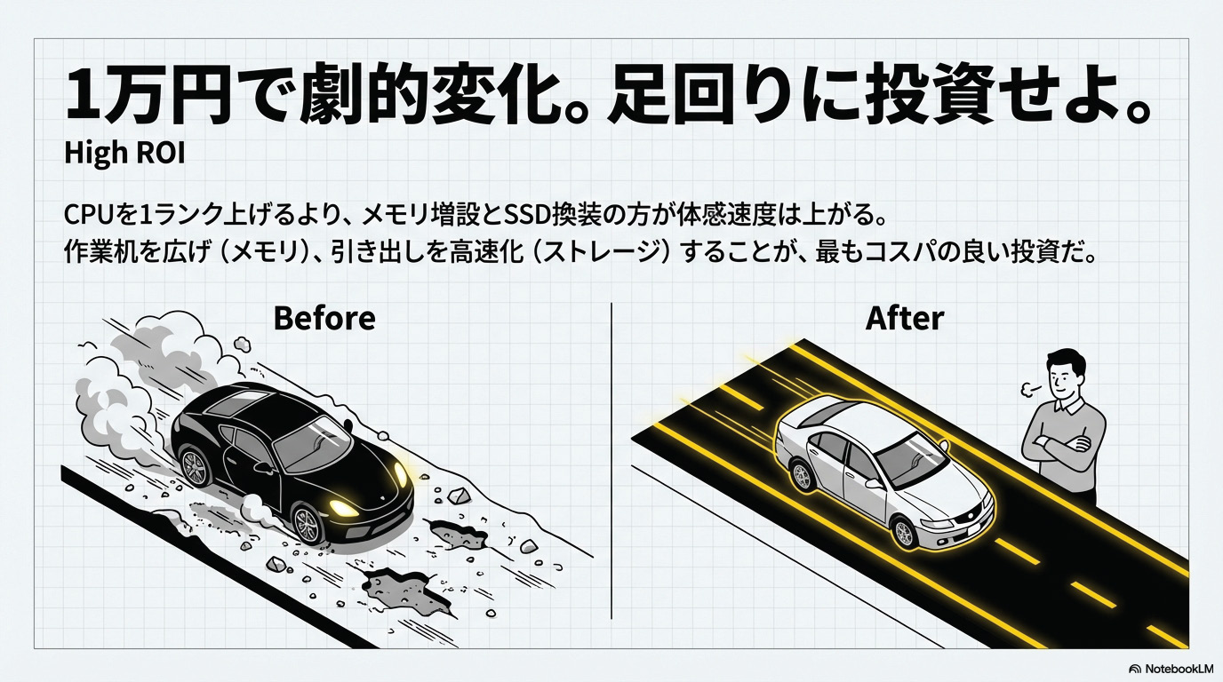 「安く、劇的に変える」なら、まずは足腰(メモリ・ストレージ)からよ。